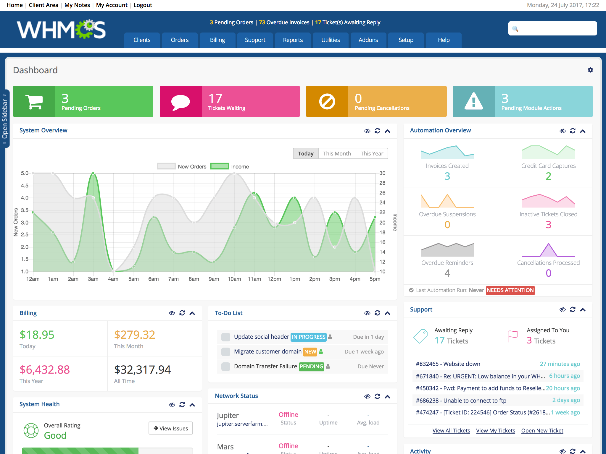 Optimize and automate your business with the WHMCS billing and automation platform. The easiest way to run a web hosting business.